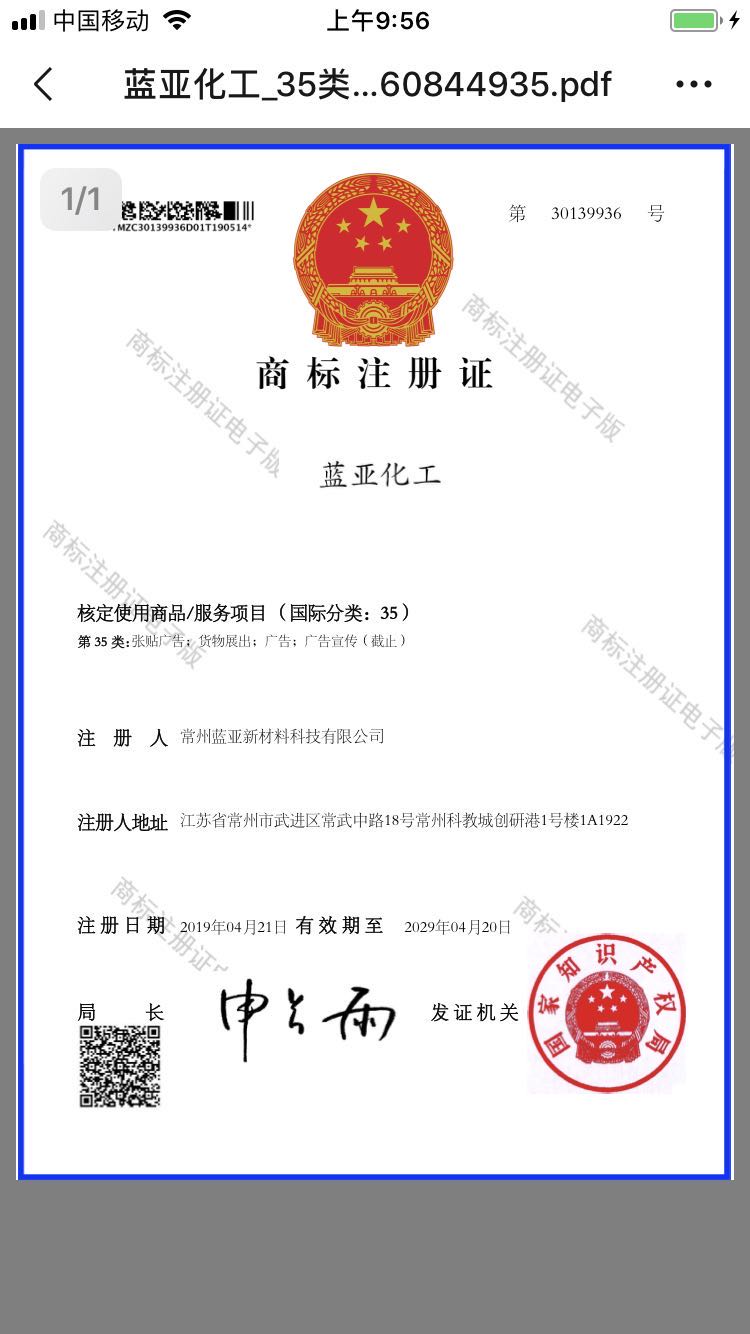 常州藍亞新材料科技有限公司是一家集技術研發(fā)、技術服務、生產加工、經銷批發(fā)為一體的化工經營企業(yè),擁有完整、科學的質量管理體系,以雄厚的實力、低廉的價格,優(yōu)良的服務與多家企業(yè)建立了長期的合作關系。我們有很廣泛的商品信息網絡,合作伙伴遍及世界各地,我們在“質量為先”的經營理念指導下,經過全體員工的不懈努力,以經取得了令人矚目的成績,并擁有一支業(yè)務精通、操作能力強的骨干隊伍。公司實力雄厚,重信用、守合同、保證產品質量,產品品種齊全、價格合理,以多品種經營特色和薄利多銷的原則,贏得了廣大客戶的信任。